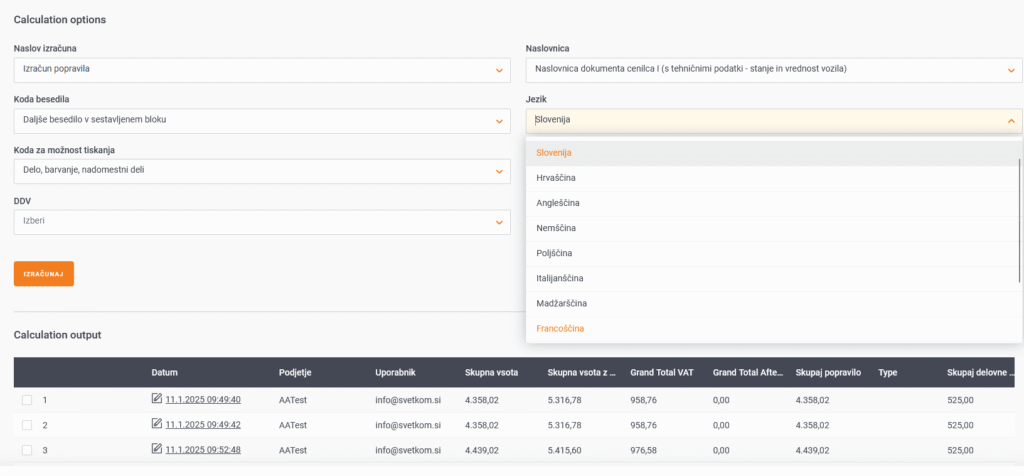 Audatex is a vehicle repair cost calculation tool that enables flexible use in different languages. By incorporating multiple language options, such as Croatian, English, German, and others, the system enables easy adaptation for local markets and legislation. This ensures easy accessibility and use for companies that want to effectively manage vehicle repairs and damage in an international environment.
