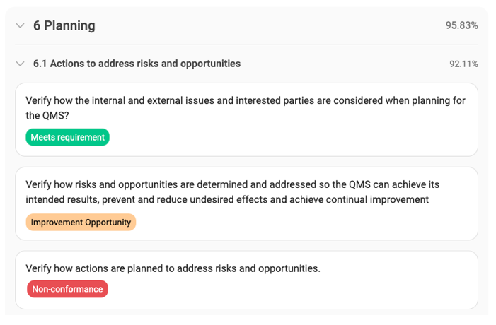 Končni rezultat je običajno predstavljen v obliki poročila, kjer lahko za vsako merilo ugotovimo, ali preiskovani subjekt ustreza kriterijem ali ne in zakaj je tako.